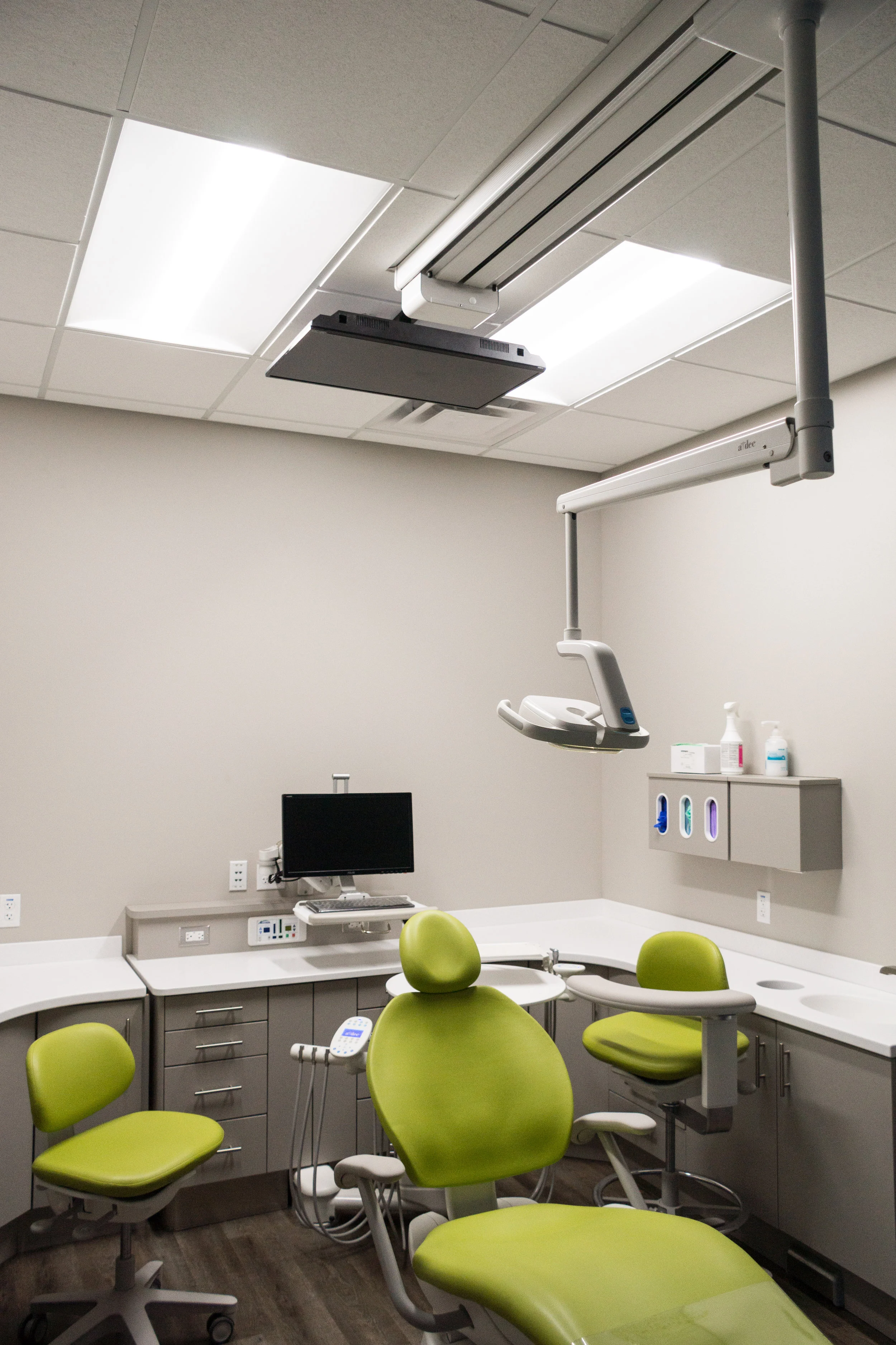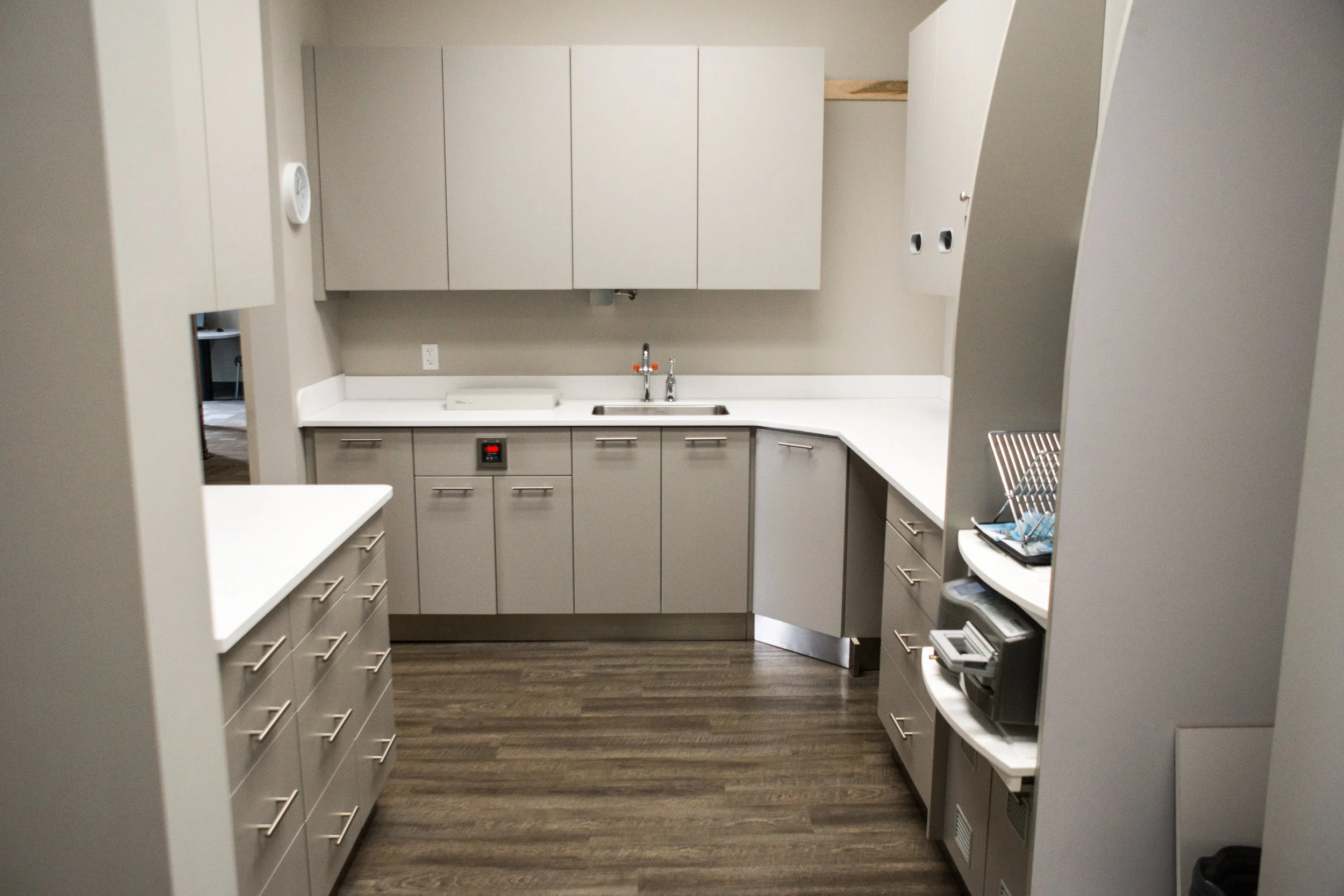Navigate by clicking on the white arrow with your mouse and enter our front door. From there, you can take a virtual walkthrough of the entire office!